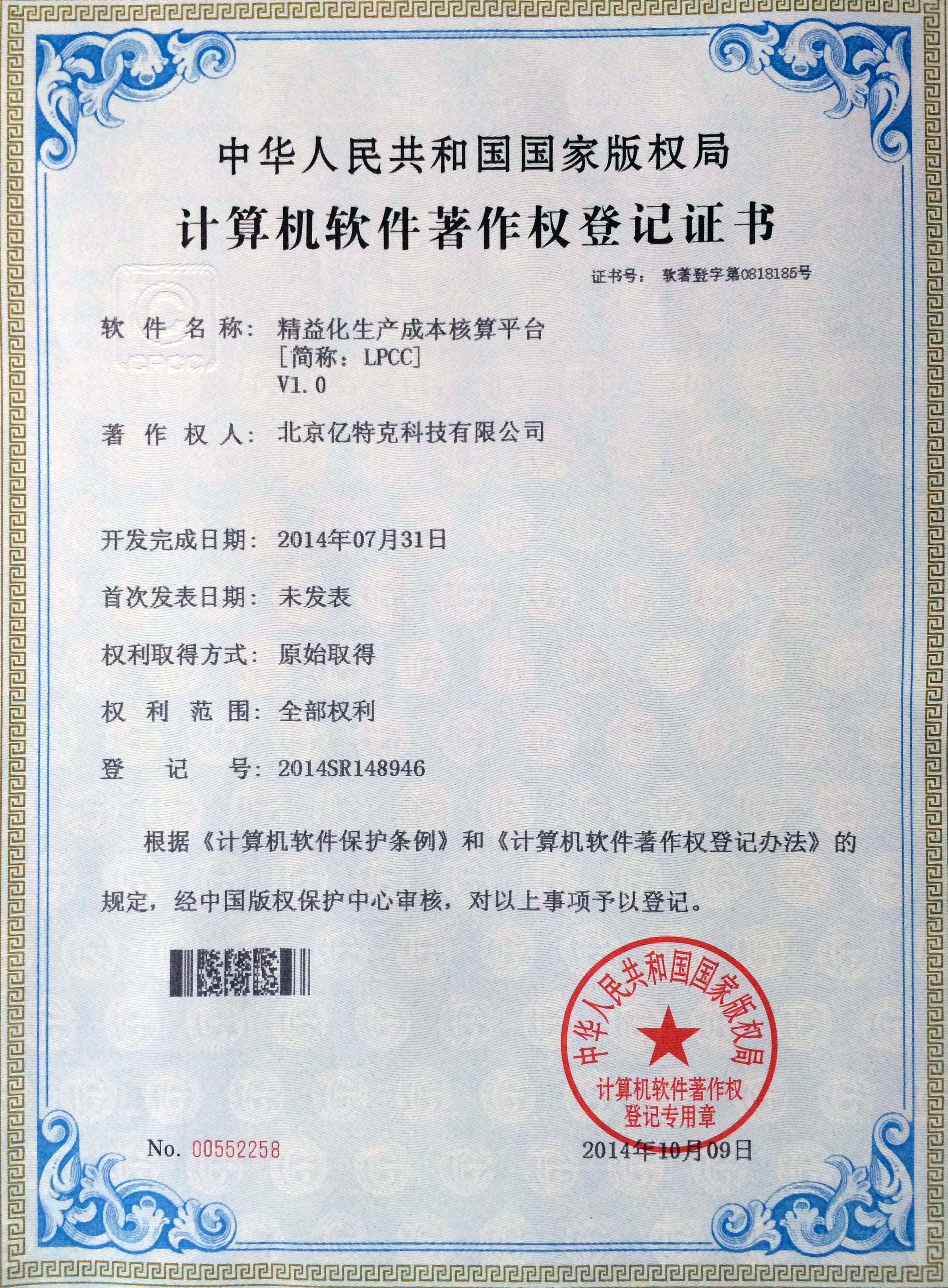 Warmly congratulate Etech on attaining LPCC copyright and its product certification (LPCC is short for Lean Production Cost Calculating platform)