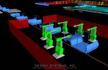 Two AutoCAD drawings, showing the upper and ground floors of the proposed paint shop, provided the basis for the conveyor layout. A complex process involving IGES files, ACE and numerous Perl scripts, developed by the authors, eventually produced all of the required conveyor sections.
