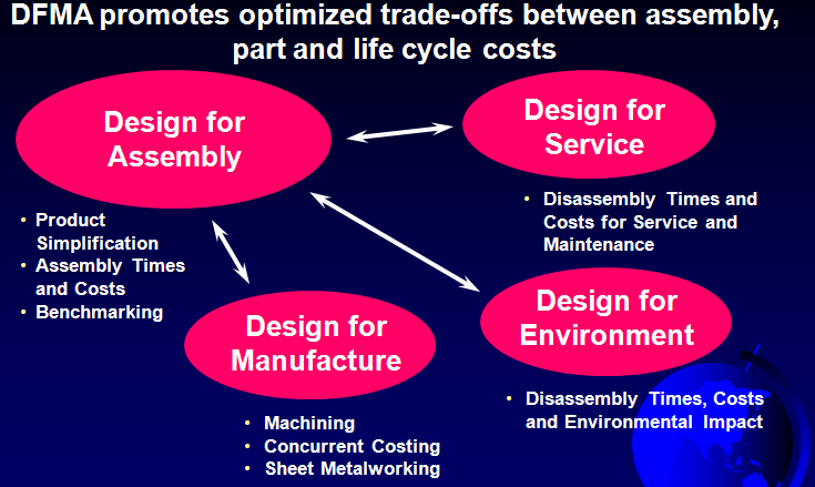 | There is a project management saying about cost, time and quality; pick any two of the three. On top of that, the product must also function in a manner consistent with the expectations of consumers. But what if there was a way you could balance each of these goals? Using a question and answer approach, DFMA software tools allow you to achieve cost reduction and quality improvement in a short amount of time. The consumer receives the product they desire at a lower cost to the producer. From the earliest conceptual stages of |