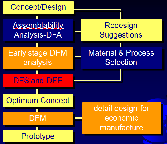 Design for Manufacture provides guidance in the selection of materials and processes and generates piece part and tooling cost estimates at any stage of product design. DFM is a critical component of the DFMA process that provides manufacturing knowledge into the cost reduction analysis of Design for Assembly.