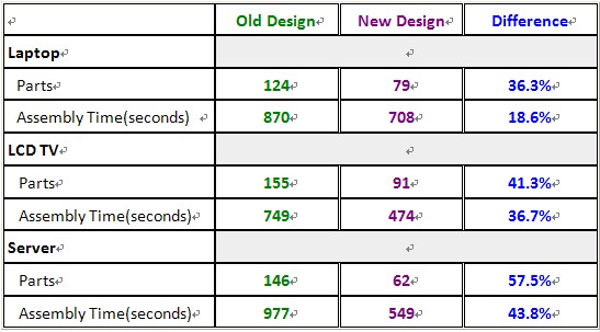This year, a top Asian electronic device manufacturer (EDM) wanted to reduce the manufacturing cost of their laptop by at least 30% within 6 months. The company had been using Six Sigma for several years, but was “looking for a systematic methodology to improve overall performance,” says Lee. He trained a team of their employees to reduce the part count and assembly time of the laptop with DFMA.