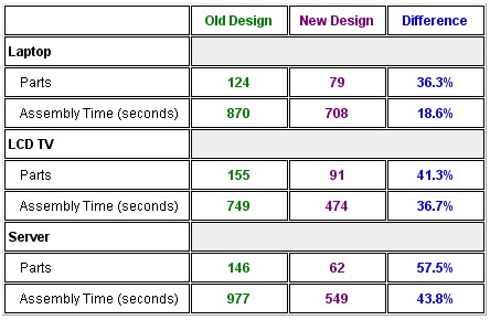This year, a top Asian electronic device manufacturer (EDM) wanted to reduce the manufacturing cost of their laptop by at least 30% within 6 months. The company had been using Six Sigma for several years, but was “looking for a systematic methodology to improve overall performance,” says Lee. He trained a team of their employees to reduce the part count and assembly time of the laptop with DFMA.