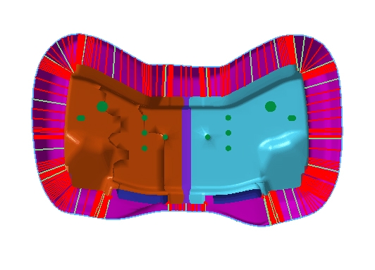 Some of the most significant enhancements in this version are delivered through DYNAFORM’s Die Face Engineering (DFE) module. DFE now offers the capacity to parametrically build die faces for a symmetrical part. Therefore, after the user defines the symmetry line, the program can automatically build the die faces for the other half of the symmetrical part accordingly.